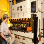 Máy dập thân C đơn Aida NC2-2500 có công suất 250 tấn. Hệ thống hướng dẫn trượt sáu điểm, bộ ly hợp và phanh kiểu ướt cung cấp tốc độ gián đoạn cao hơn và tuổi thọ cao - quan trọng.
