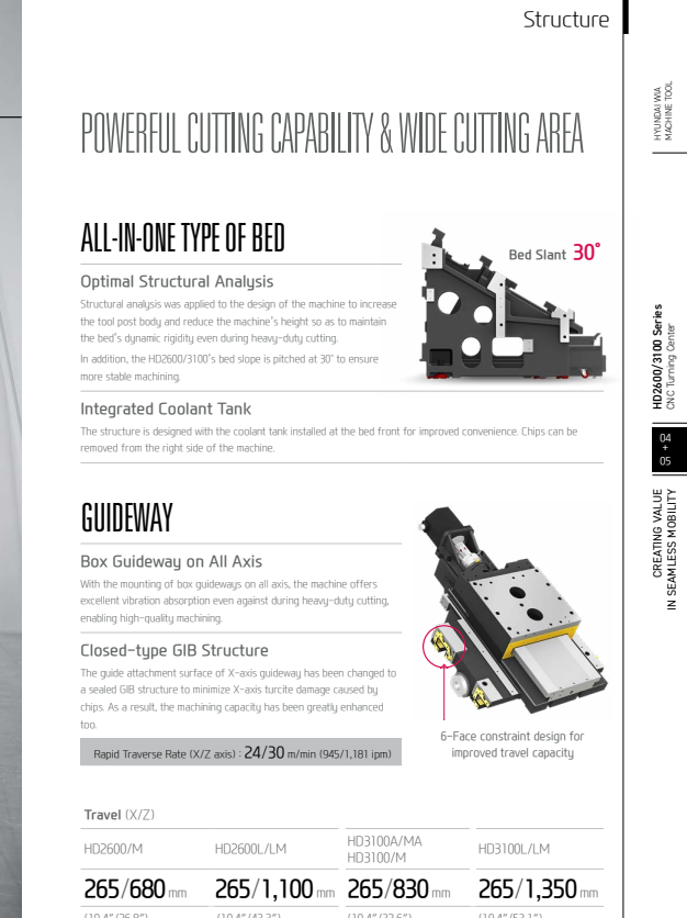 ●Thanh dẫn hướng dạng hộp cho khả năng chịu tải cao, phù hợp với gia công nặng/ Box guideways for heavy duty cutting