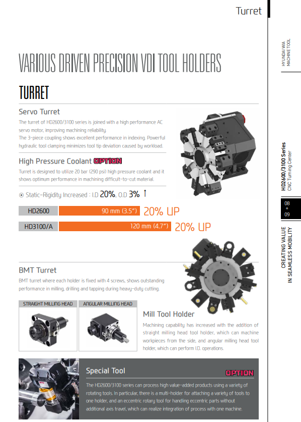 ● Cùng với mâm dao servo tốc độ cao và độ cứng cao/High-rigidity and high-speed servo turret